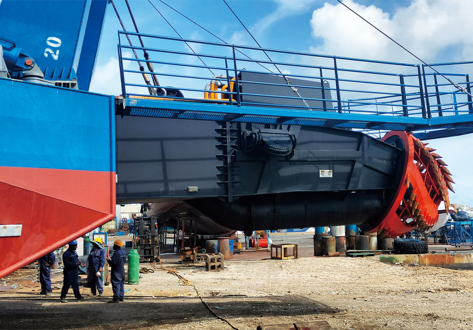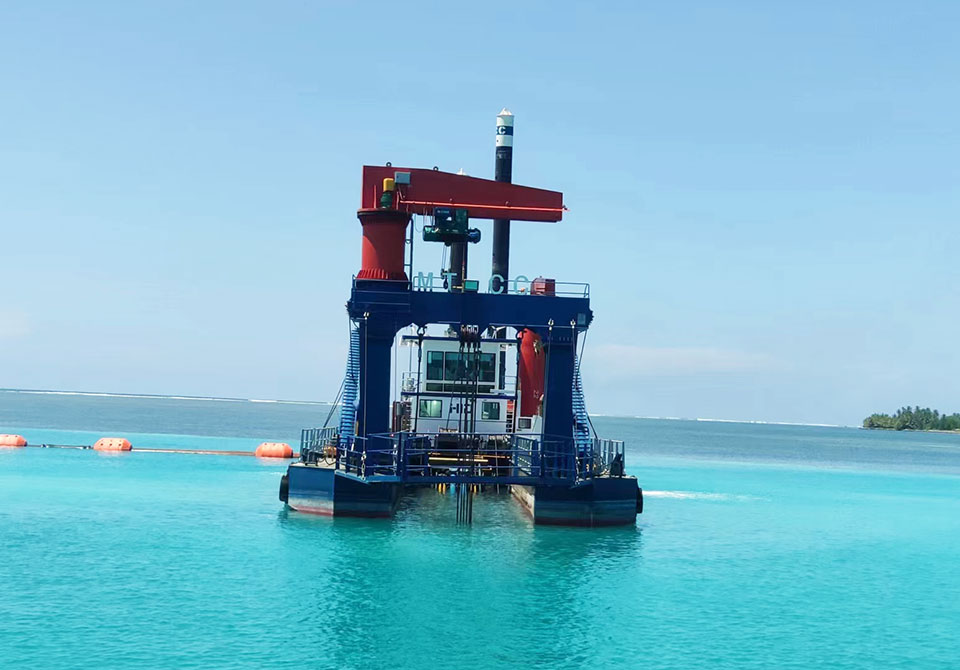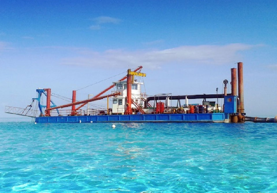 通過了解,客戶的施工周期非常緊張,而且主要用于較硬土質(zhì)的疏浚。我公司立刻特派技術員到馬爾代夫現(xiàn)場考察工況,經(jīng)過與客戶公司總經(jīng)理Ziyad Mohammed的溝通,我們建議采用型號 YS-CSD5014的絞吸式挖泥船,并且針對多珊瑚礁介質(zhì),我們的技術員建議改進鉸刀冠結(jié)構(gòu),絞刀頭加上防護罩,有效防止馬爾代夫珊瑚礁顆粒堵塞絞刀頭另外加厚吸排管??蛻魧ξ夜緦Ψ桨阜浅UJ同,雙方確認方案后,我們董事長王永生先生立刻集結(jié)兩個公司的生產(chǎn)力量,對YS-CSD5014的絞吸式挖泥船進行緊急制作,董事長親自下車間嚴把質(zhì)量關,歷經(jīng)兩個月,順利交付到客戶項目現(xiàn)場。